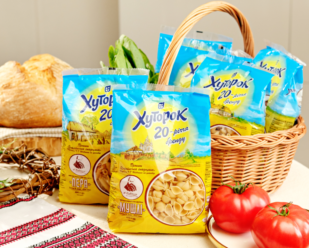 - Популярність макаронних виробів «Хуторок» обумовлена в першу чергу їх виключною універсальністю: високою поживністю, гарною засвоюваністю організмом і легкою розварюваністю, що обумовлює швидкість приготування. Макарони «Хуторок» виробляються тільки з пшеничного борошна вищого ґатунку, не містять барвників і сторонніх домішок. Асортиментна лінійка «Хуторок» включає в себе макарони різних форм: ріжки, ріжки кручені, пір’я, спіраль, вермішель, черепашки, черепашки дрібні, локшина і спагеті.